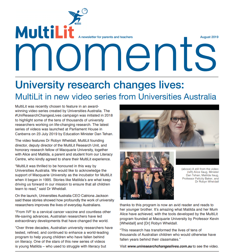 - MultiLit featured in Universities Australia video campaign, #uniresearchchangeslives
