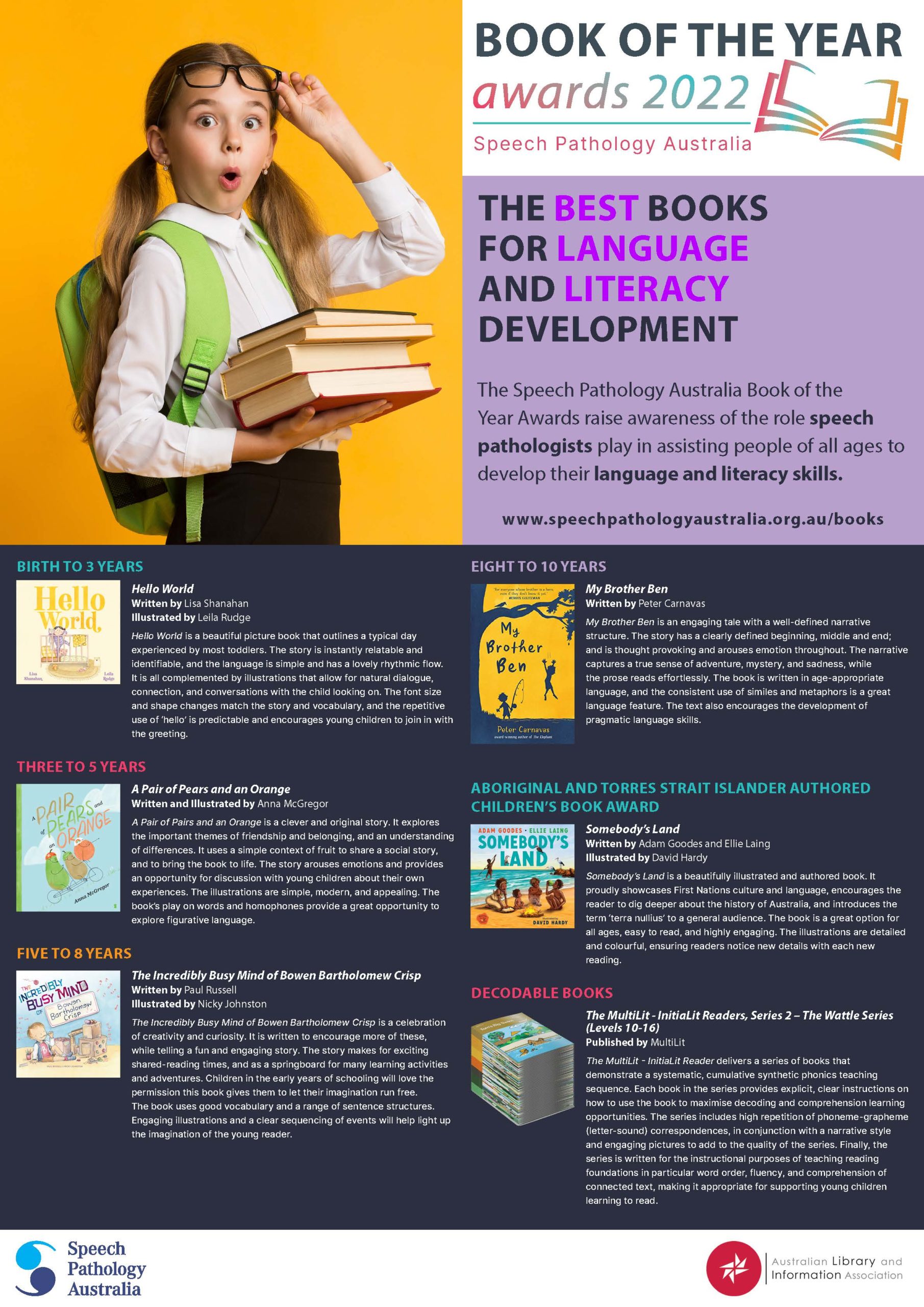 The awards aim to promote quality Australian books that help children get the best, most literate start in life. Thank you SpeechPathologyAustralia for this honour!