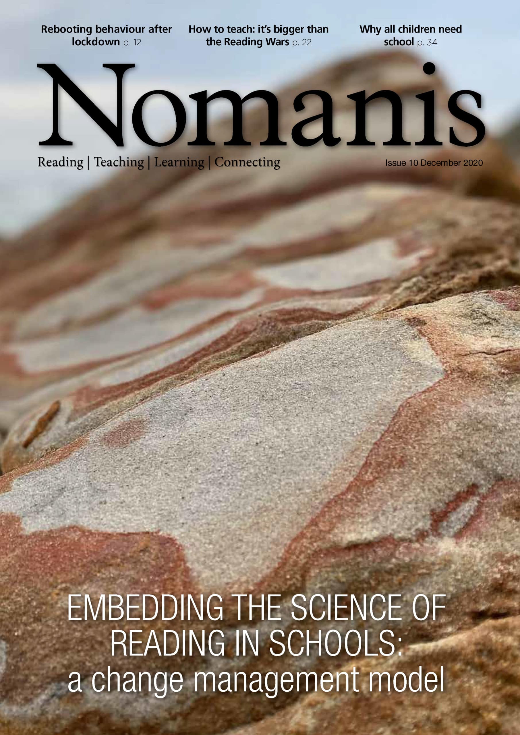 Nomanis, published twice a year, explores the ideas and evidence about effective instruction in reading and related skills, for teachers, parents, fellow professionals and policy makers. Our aim is to provide readable and engaging accounts of developments in the teaching of reading and writing, distilled from the sometimes rather esoteric, and certainly dry, research literature. Subscriptions are free, and we welcome contributions and correspondence.