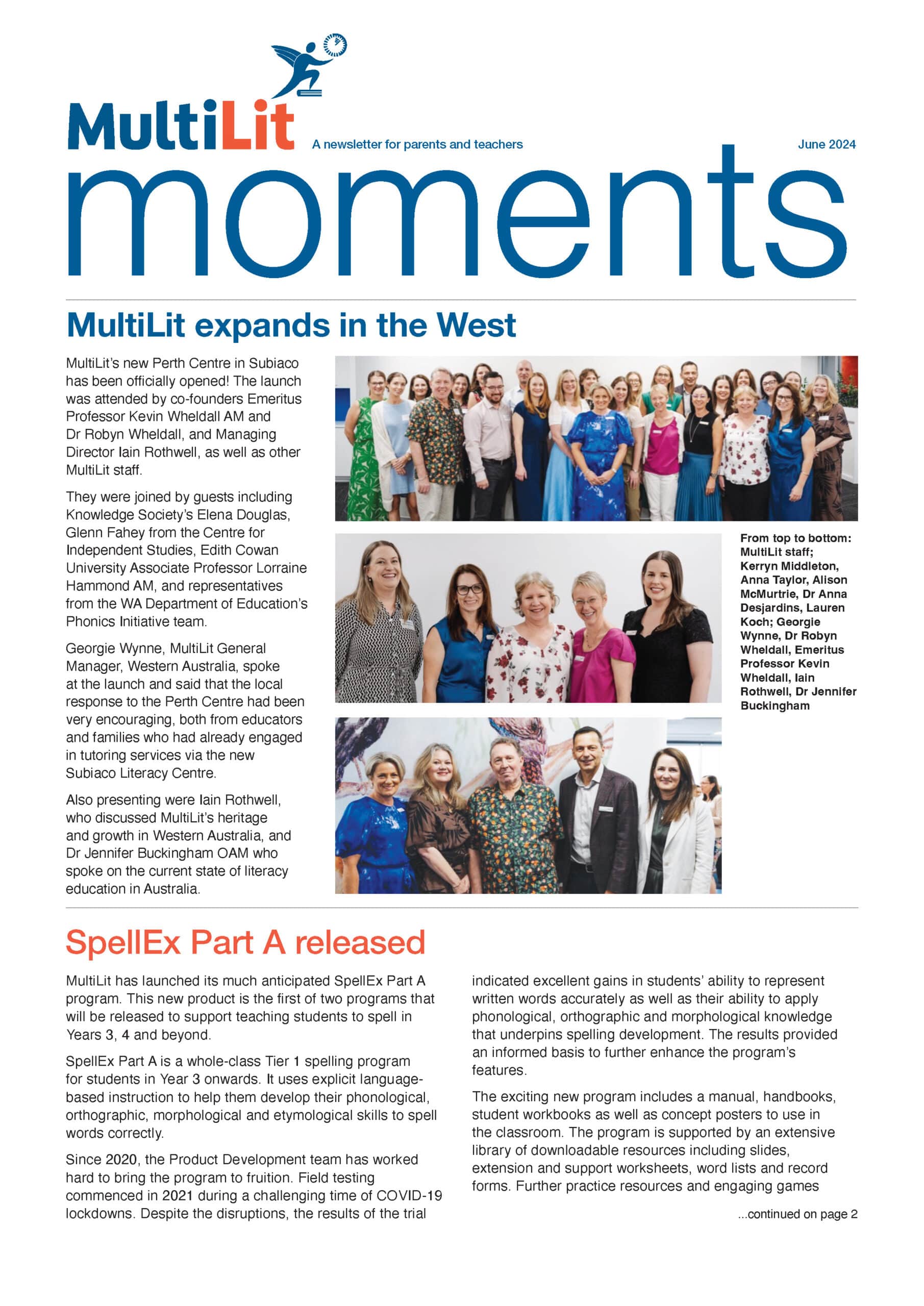 In this edition, MultiLit expands in the West, SpellEx Part A is released, and a new initiative to enhance teacher knowledge of evidence-based practice is launched.