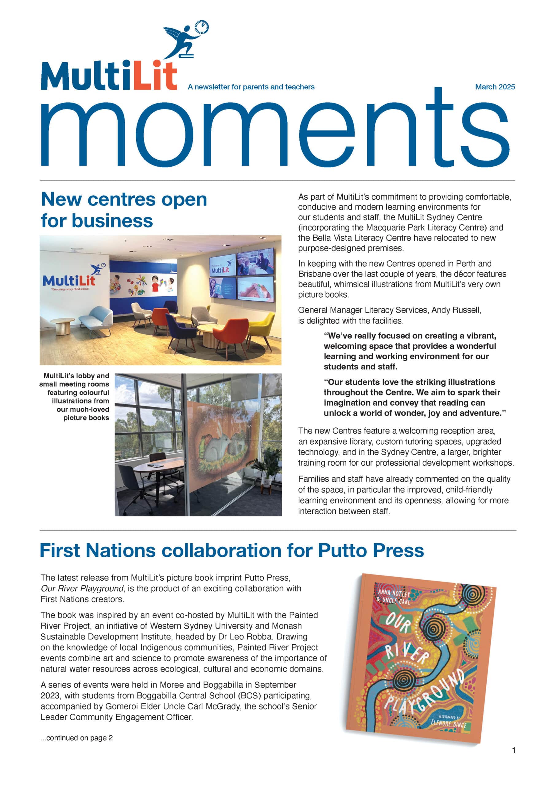In this edition, MultiLit opens new centres, Putto Press publishes its first book with First Nations creators, the Closing the Gap School Partnerships Initiative is extended, and we feature new program and professional development releases.