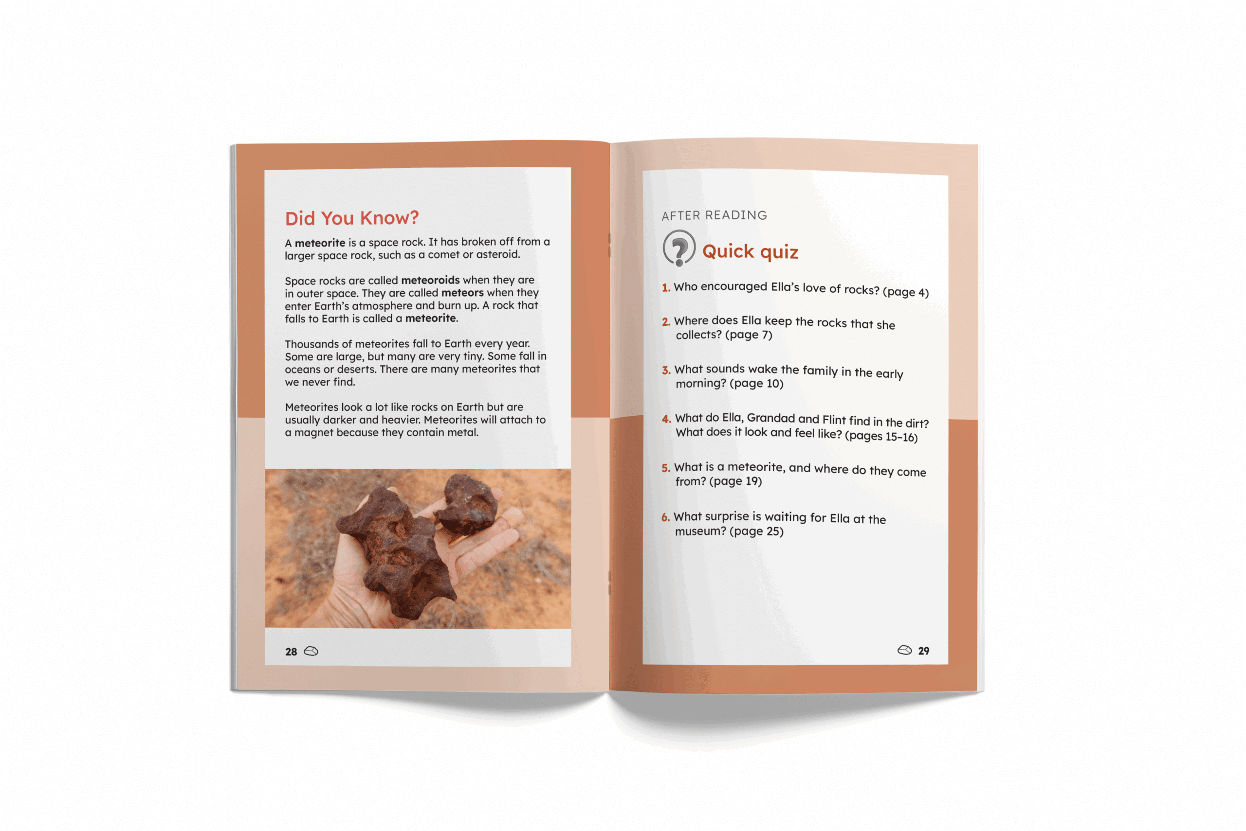 Ella loves collecting rocks. When she finds an extra-special rock, she wonders what it is and where it came from.