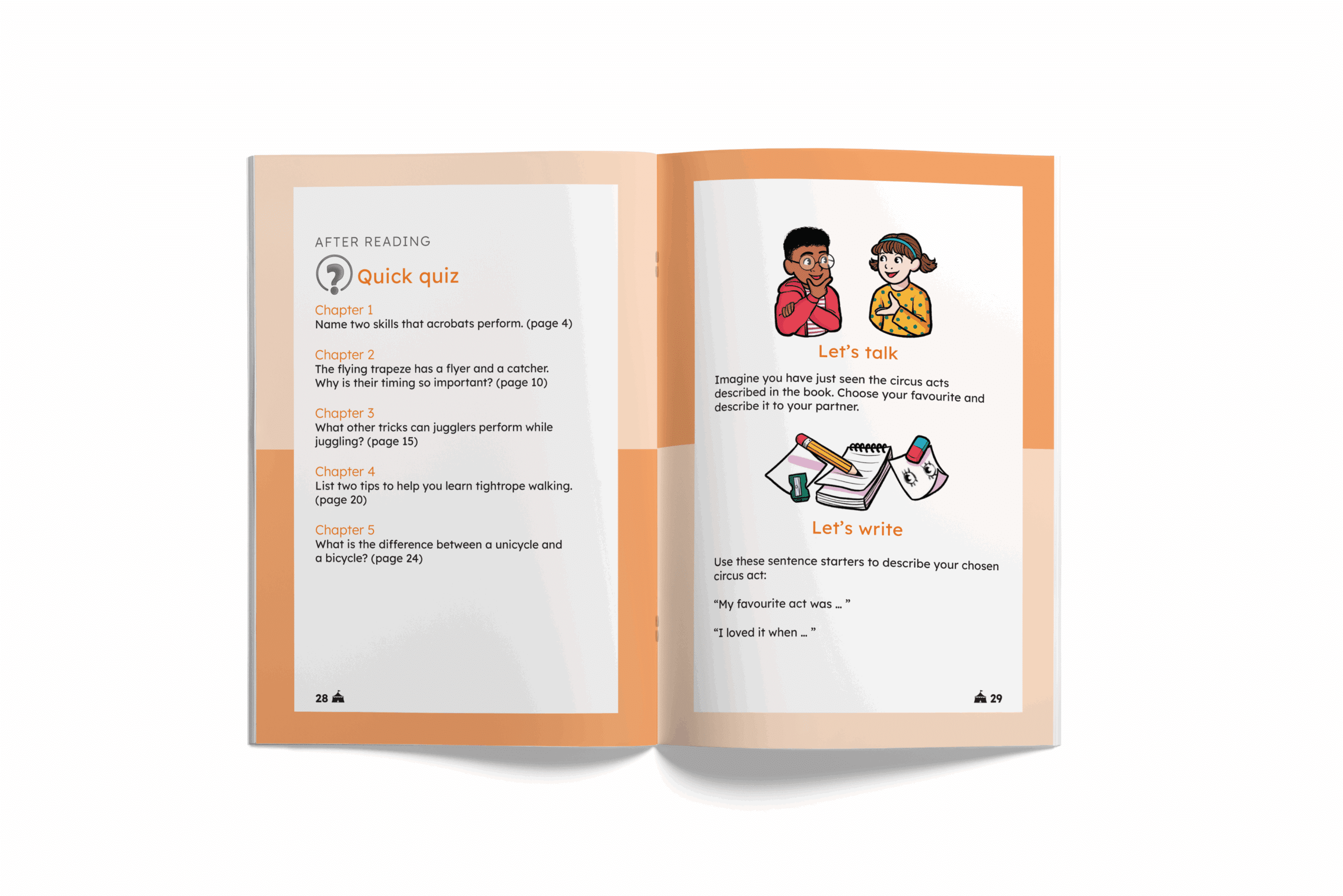 Each non-fiction book contains some preview activities, and comprehension activities at the end of the book, including a quick quiz and discussion prompts to prepare for a simple writing task.