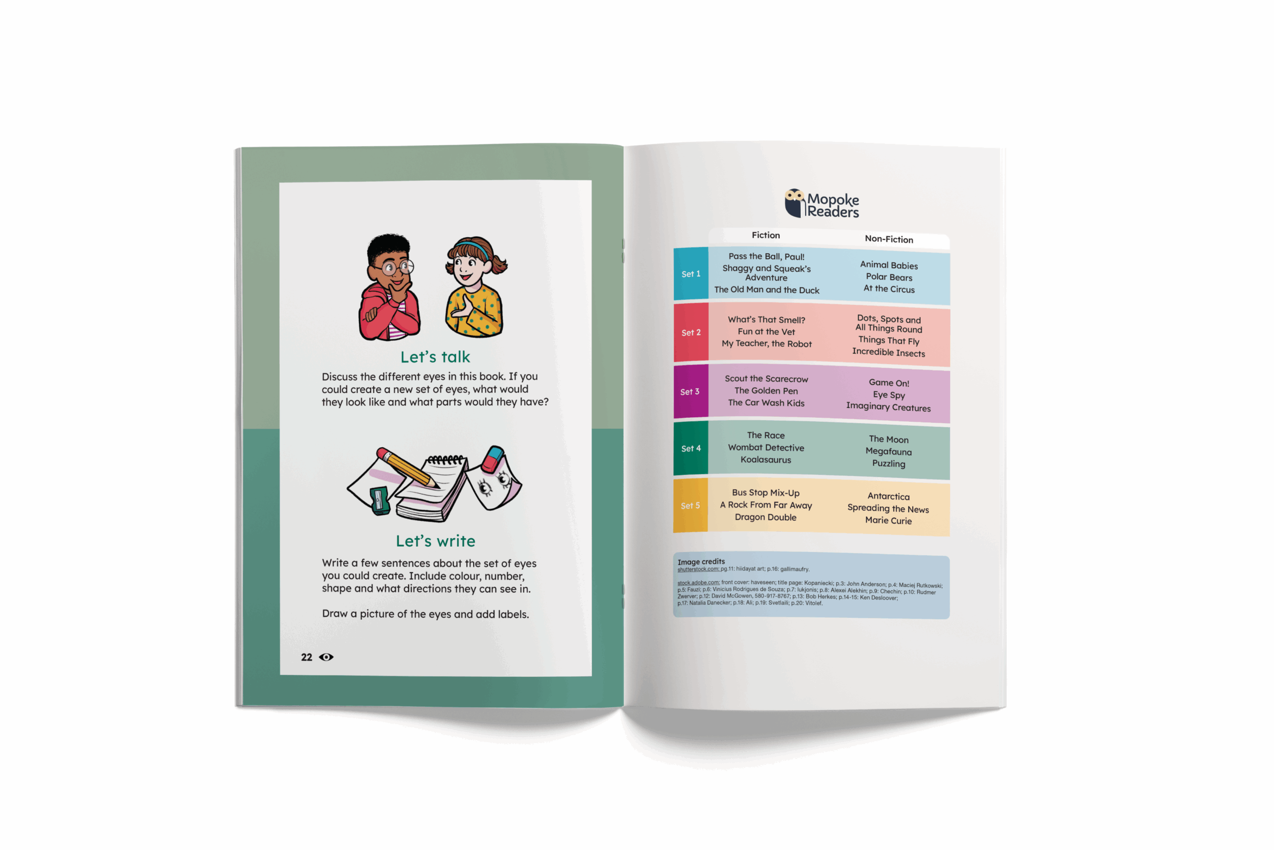 Mopoke Readers provide general reading practice for children aged 7–9, as they develop their reading fluency and apply comprehension strategies to fiction and non-fiction texts.