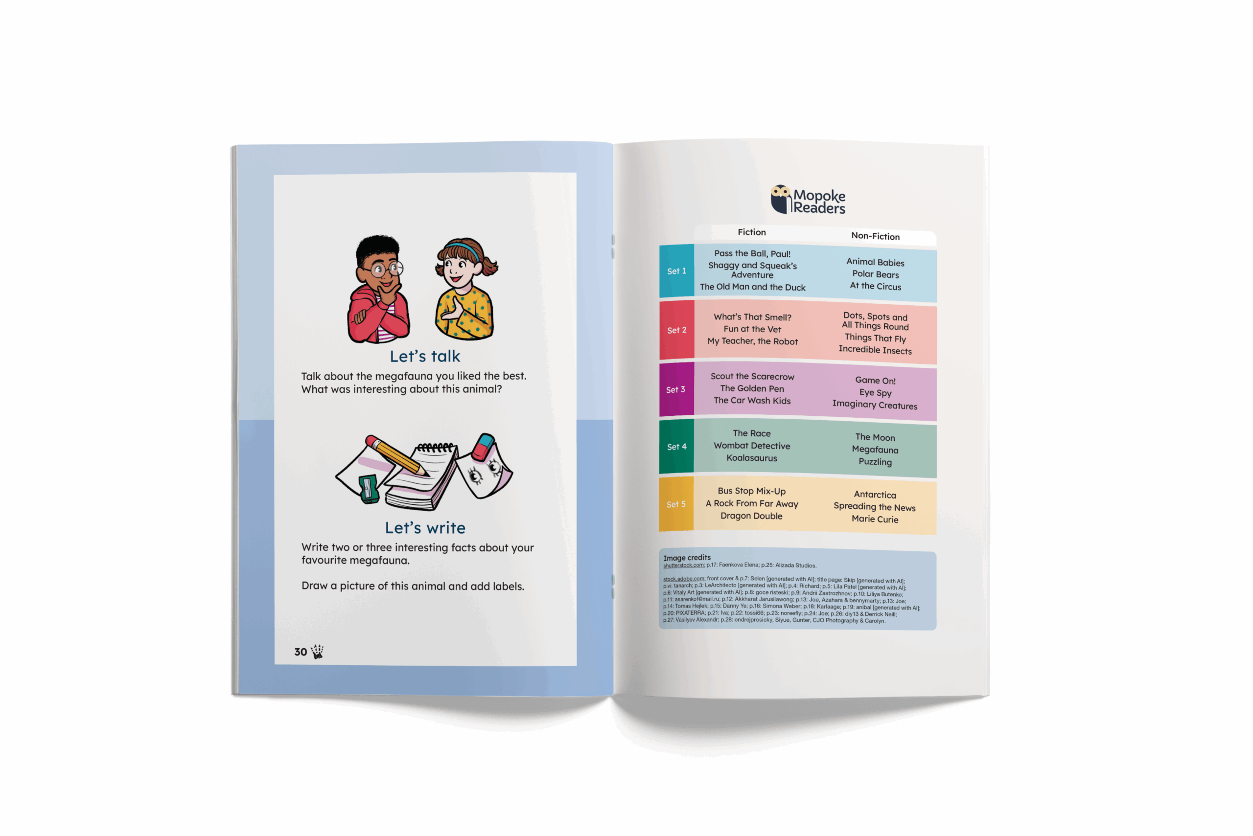 Mopoke Readers provide general reading practice for children aged 7–9, as they develop their reading fluency and apply comprehension strategies to fiction and non-fiction texts.
