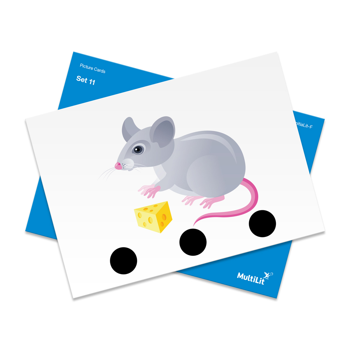 A set of 98 sturdy, glossy, A5-size picture stimulus cards used during Term 1 of the InitiaLit–Foundation lessons, as directed in the scripts, to support teaching of phonological awareness skills (e.g., syllables, end sounds).