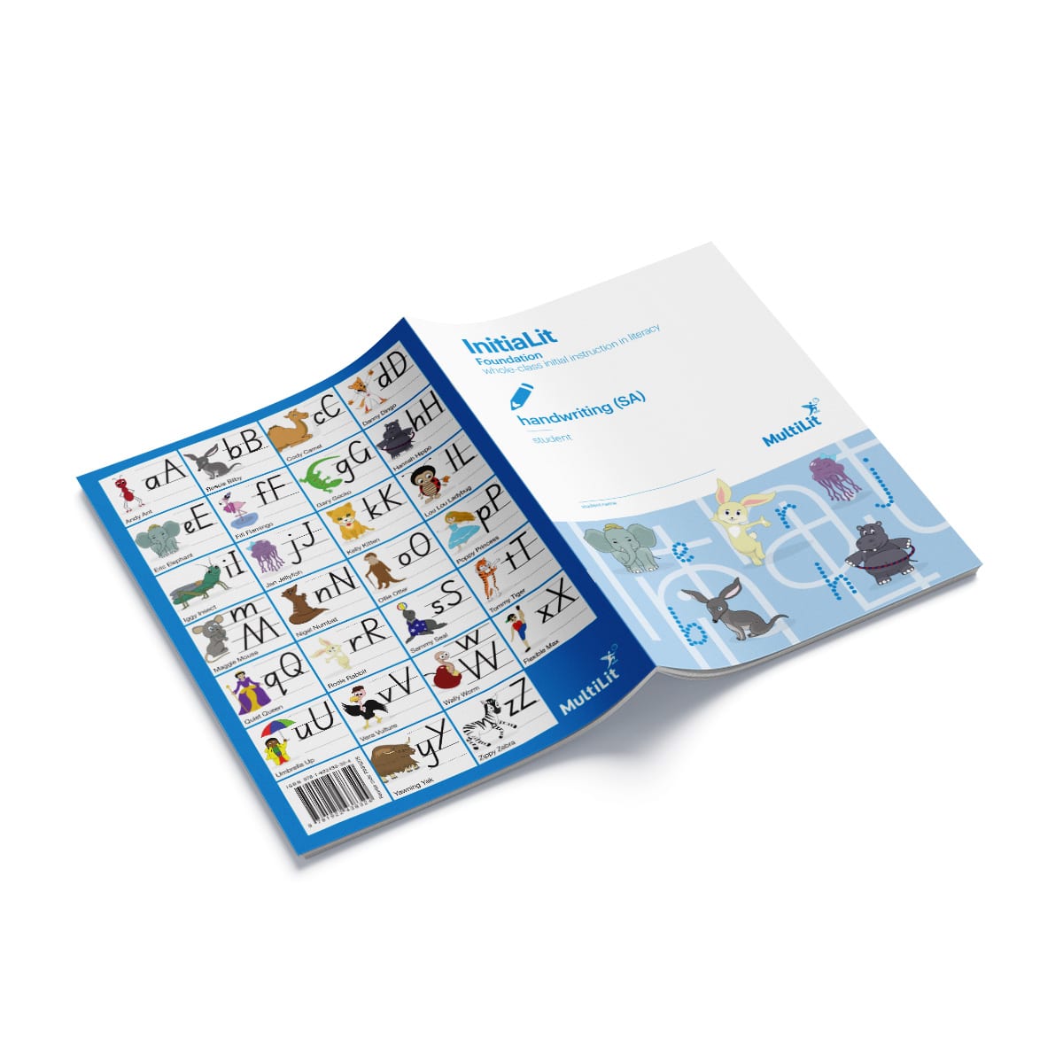 A pack of 5 student workbooks containing all InitiaLit–Foundation handwriting worksheets for the year, using SA font.