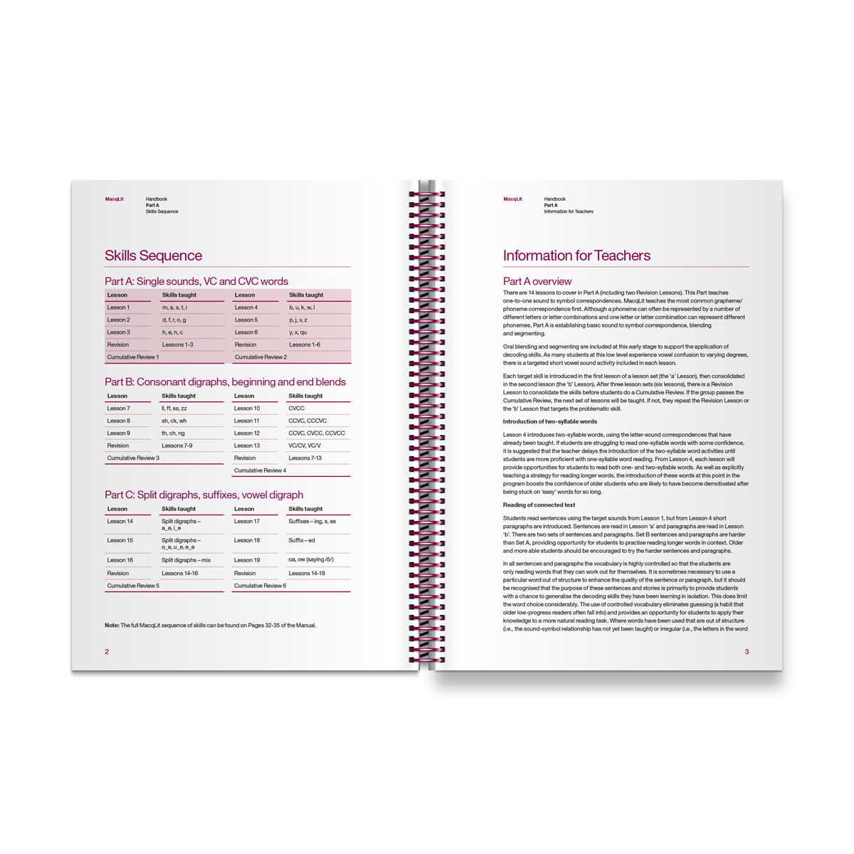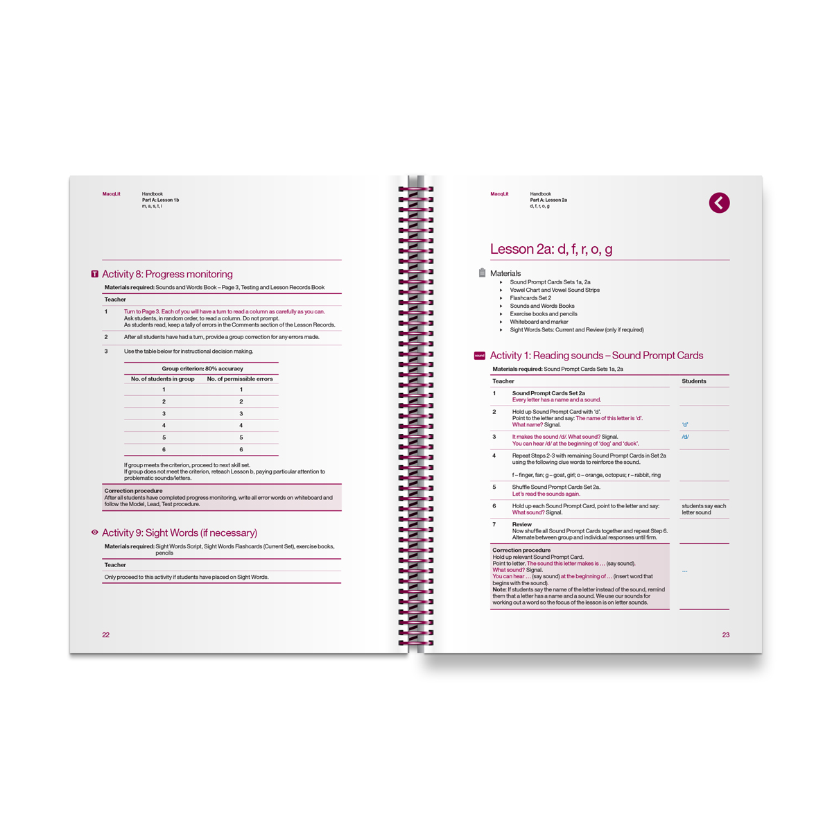 First Handbook in the MacqLit program, containing Lessons 1-6 for small group instruction.
