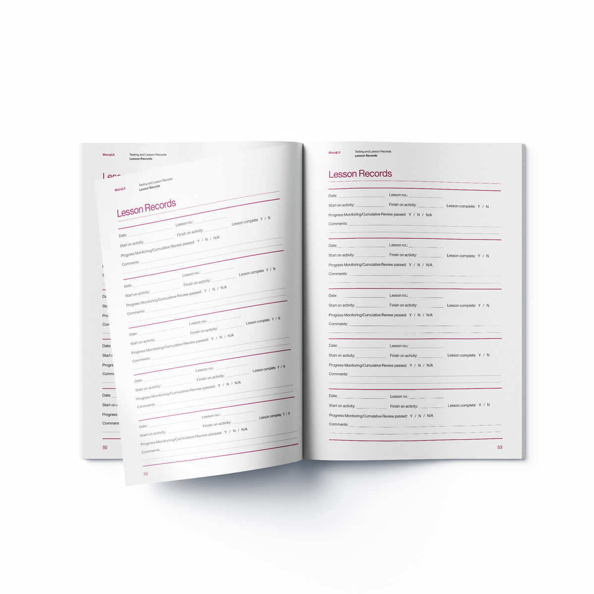 A number of other useful record sheets are included (Lesson Record sheets, Reinforced Reading Records and Attendance Records) so that all records are kept in one place.