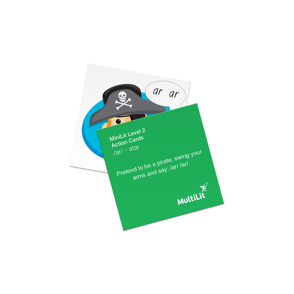 A set of 13 cards used to link certain letter-sound correspondences to an action during small group MiniLit lessons. These sturdy, glossy cards (100mm x 100mm) display a picture prompt to help children remember each action and its relevant sound (e.g., sh, finger to lips). They are an integral part of the scripted lessons, and can also be used for additional revision when necessary.