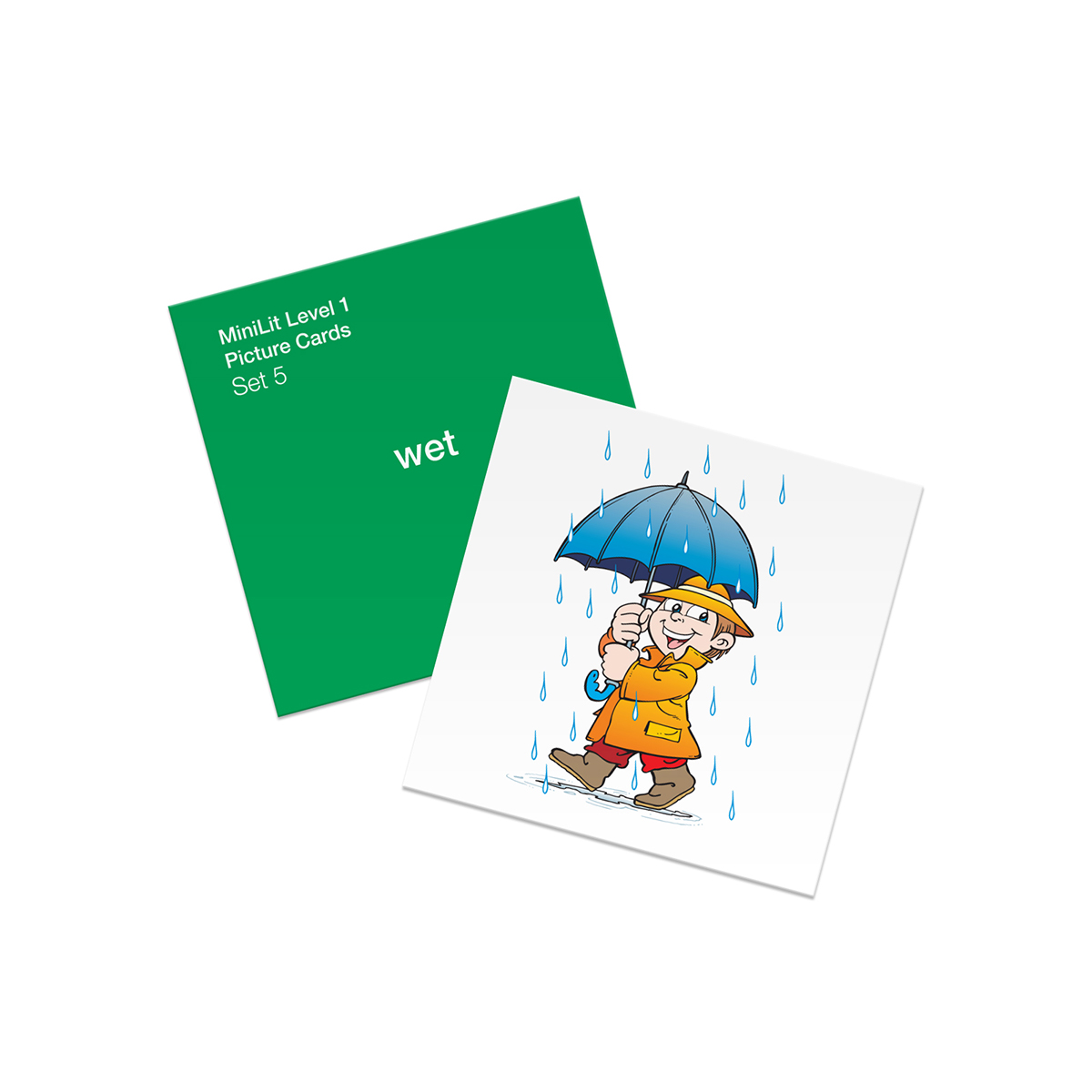 A set of sturdy, glossy picture stimulus cards (110mm x 110 mm) used during small group MiniLit lessons, as directed in the scripts, to support teaching of phonological awareness (e.g., beginning sounds, end sounds).