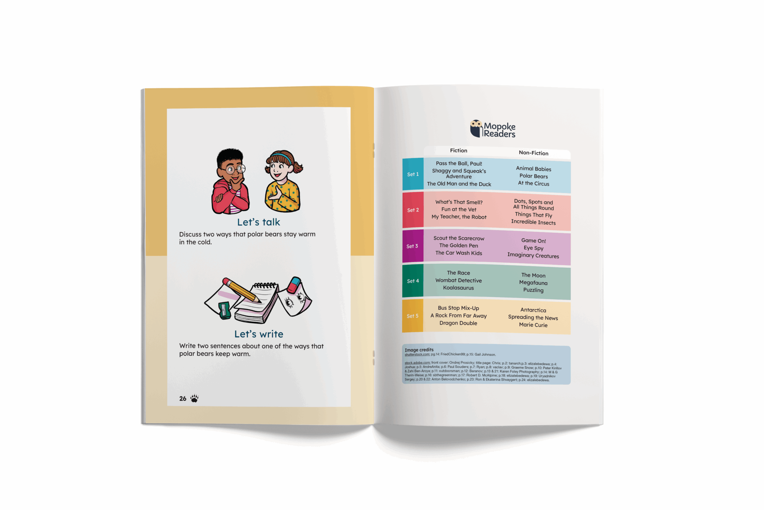 Mopoke Readers provide general reading practice for children aged 7–9, as they develop their reading fluency and apply comprehension strategies to fiction and non-fiction texts.