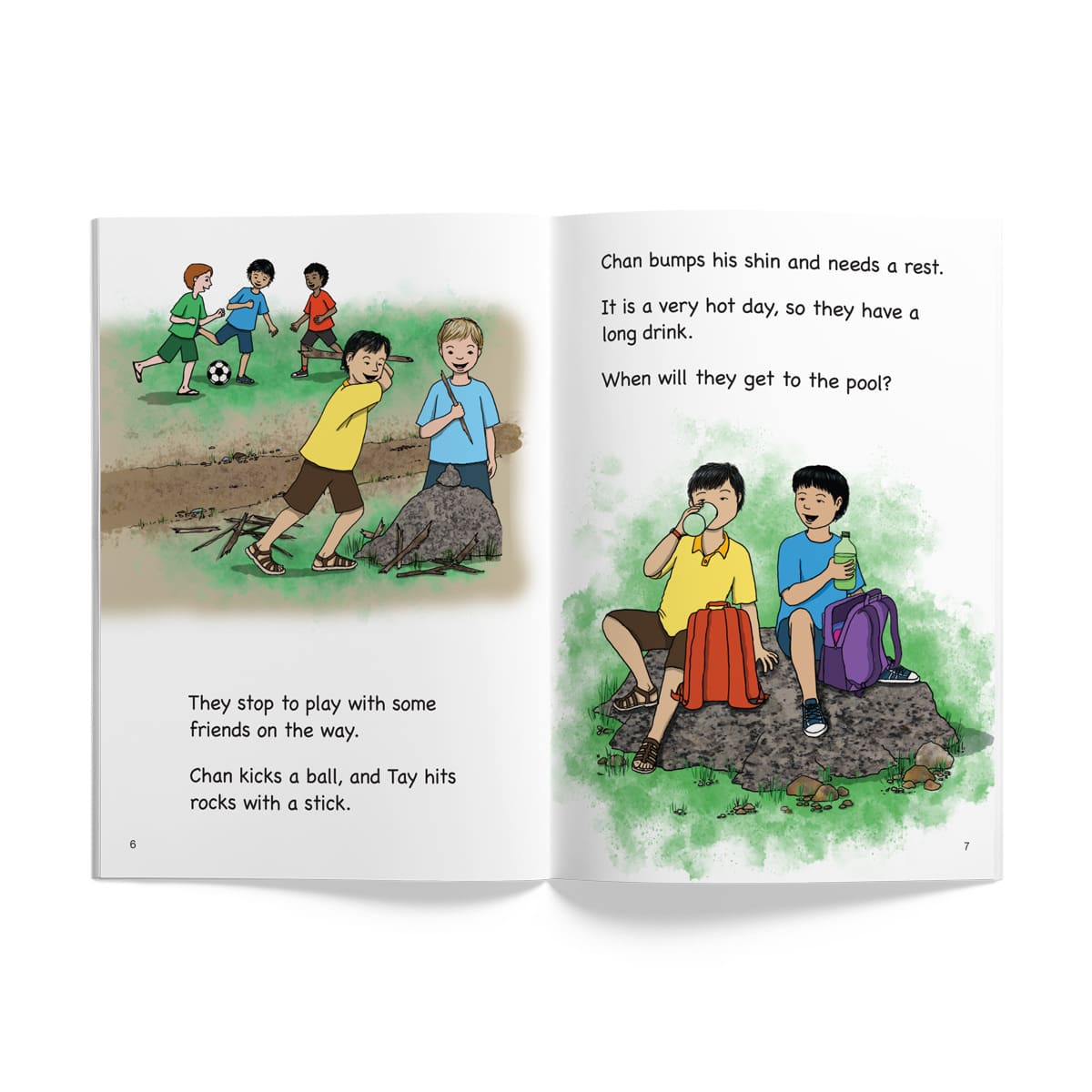 Two friends, Chan and Tay, set off for the pool. They have some fun on the way. This Level 10 reader in the InitiaLit Readers sequence focuses on revising all sounds covered in Levels 1-9. (Author: Alison Folland, Illustrator: Janet Tiitinen)