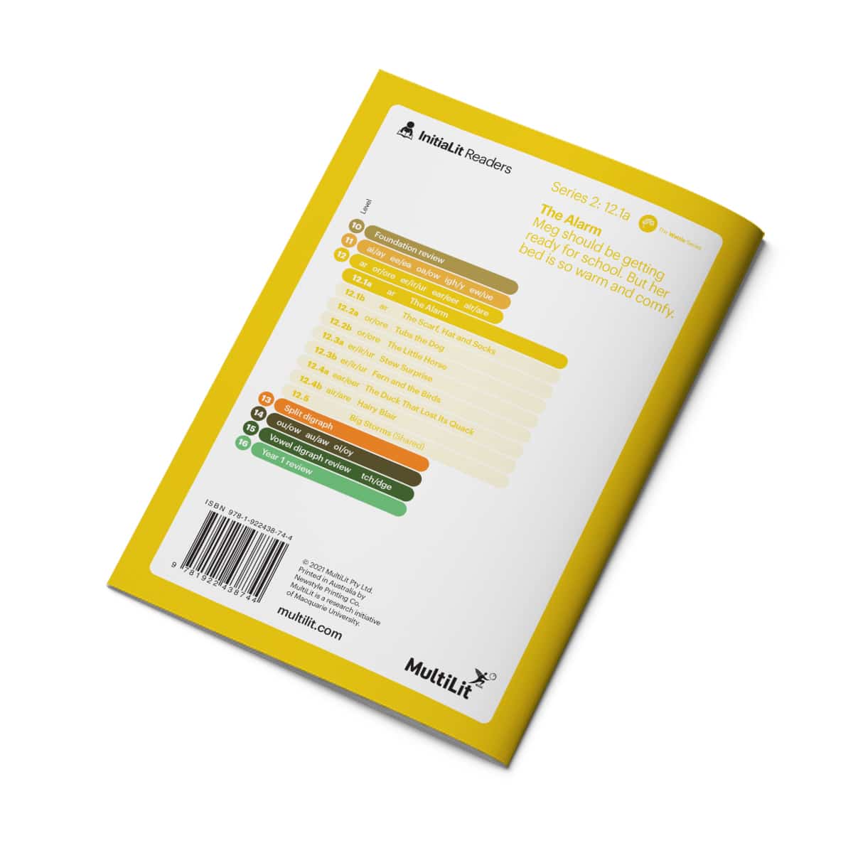 One copy of each book in Level 12 of The Wattle Series of decodable InitiaLit Readers, designed for children in their second year of school, and for older students still developing their decoding skills. This level focuses on the sounds: ar, or/ore, er/ir/ur, ear/eer, air/are. The 9 titles included are: 12.1a The Alarm, 12.1b The Scarf, Hat and Socks, 12.2a Tubs the Dog , 12.2b The Little Horse, 12.3a Stew Surprise, 12.3b Fern and the Birds, 12.4a The Duck That Lost Its Quack, 12.4b Hairy Blair, 12.5 Big Storms (Shared). These Readers are carefully scaffolded for children to practise their developing reading skills, following the InitiaLit–1 phonic sequence, and should be purchased by schools using the InitiaLit–1 program and MiniLit Sage. Full sets of Readers (Levels 10-16), bundle sets for each level (10-16) or individual titles can also be purchased by parents wishing to support their child’s reading, or by any school wishing to provide decodable readers to support an evidence-based synthetic phonics approach to teaching reading. Each title includes instructions and pre- and post-reading activities to help teachers and parents use the books effectively. In addition, the last Reader in each Level is a Shared Reader, allowing an adult to provide extra support to consolidate the skills targeted at that level by reading together with a child.
