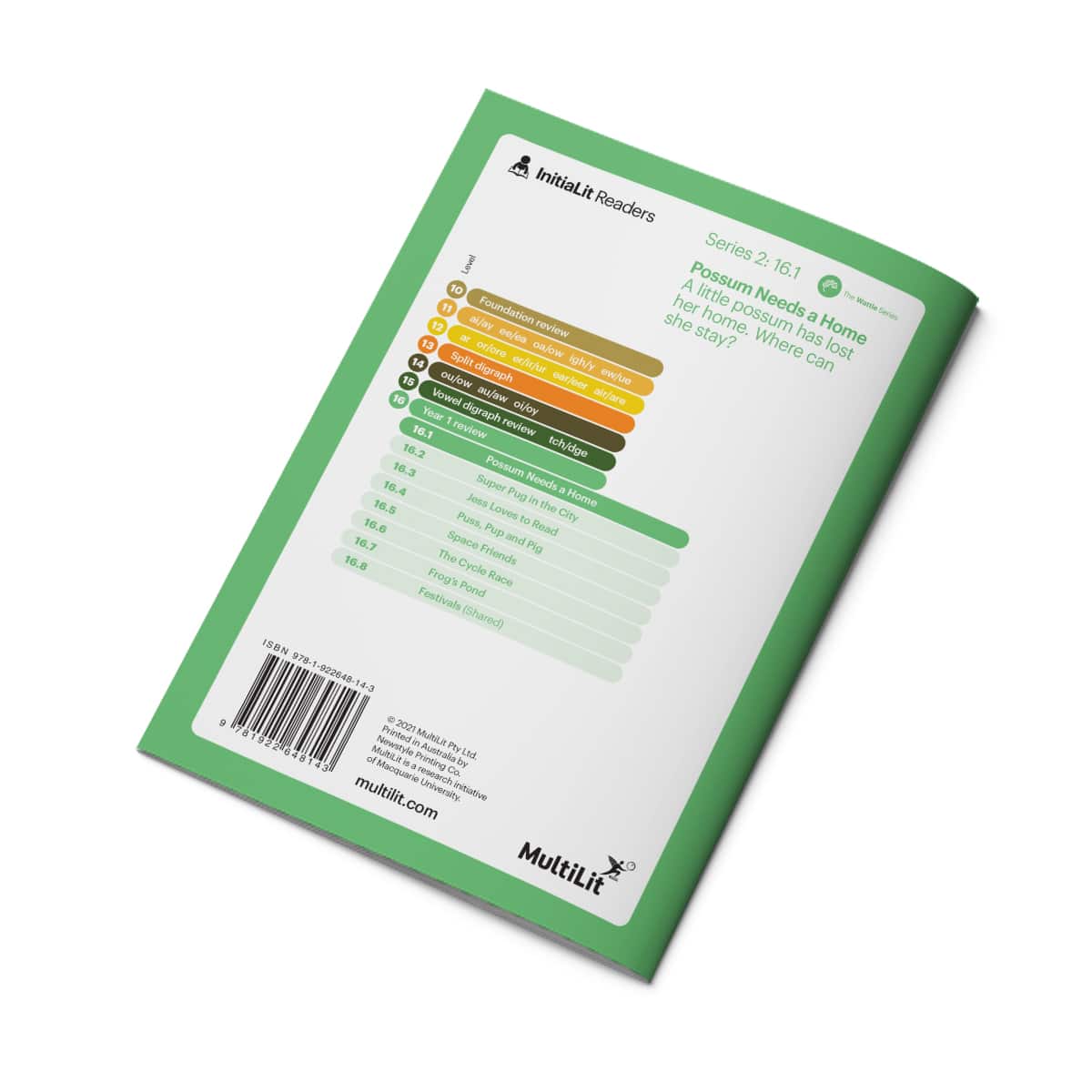 One copy of each book in Level 16 of The Wattle Series of decodable InitiaLit Readers, designed for children in their second year of school, and for older students still developing their decoding skills. This level focuses on reviewing vowel digraphs and tch/dge. The 8 titles included are: 16.1 Possum Needs a Home, 16.2 Super Pug in the City, 16.3 Jess Loves to Read, 16.4 Puss, Pup and Pig, 16.5 Space Friends, 16.6 The Cycle Race, 16.7 Frog's Pond, and 16.8 Festivals (Shared). These Readers are carefully scaffolded for children to practise their developing reading skills, following the InitiaLit–1 phonic sequence, and should be purchased by schools using the InitiaLit–1 program and MiniLit Sage. Full sets of Readers (Levels 10-16), bundle sets for each level (10-16) or individual titles can also be purchased by parents wishing to support their child’s reading, or by any school wishing to provide decodable readers to support an evidence-based synthetic phonics approach to teaching reading. Each title includes instructions and pre- and post-reading activities to help teachers and parents use the books effectively. In addition, the last Reader in each Level is a Shared Reader, allowing an adult to provide extra support to consolidate the skills targeted at that level by reading together with a child.