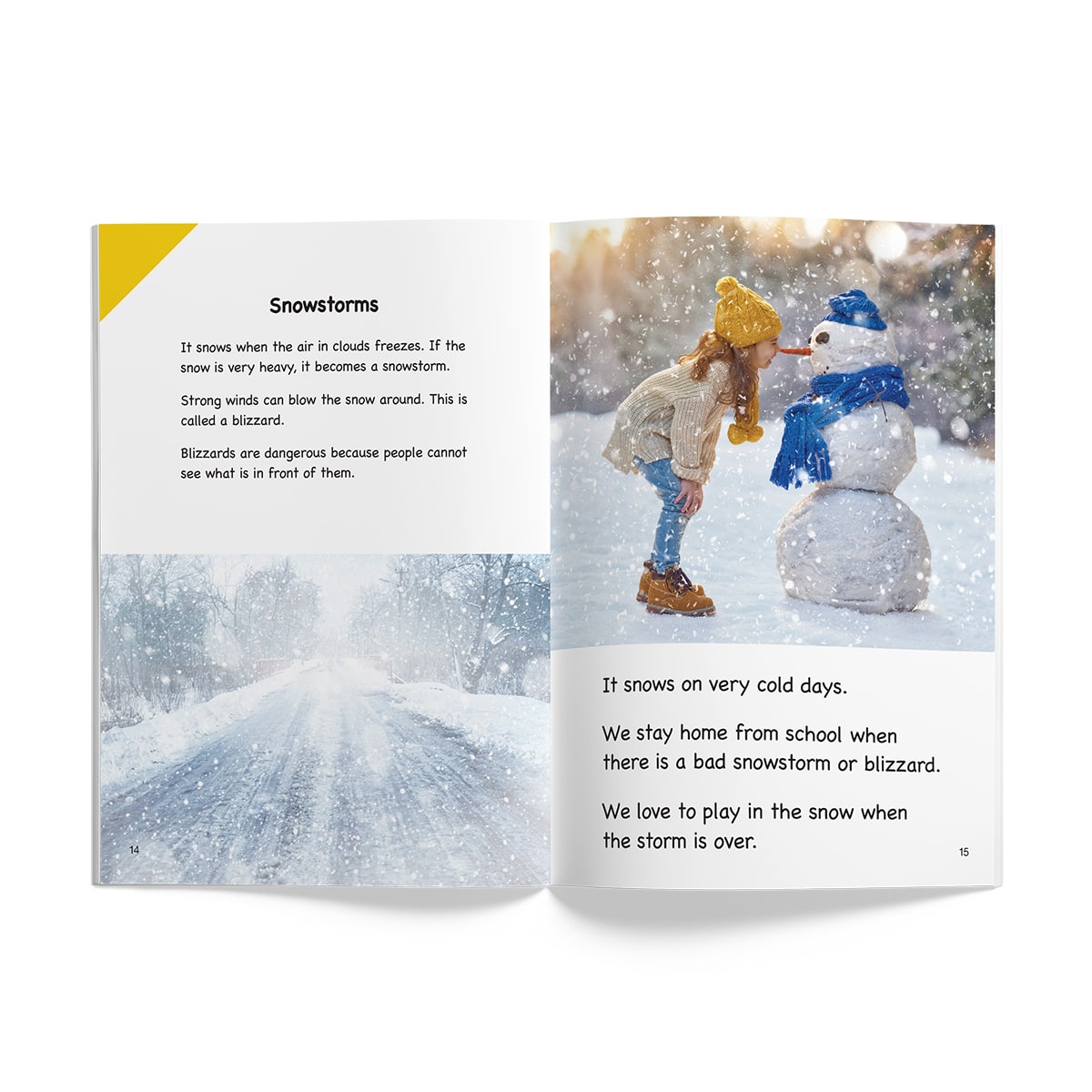 Flashes of light, swirling winds and snowy days. Find out more about BIG storms. (Author: Barbara Healy) Big Storms is a Shared Reader, allowing an adult to help consolidate all skills targeted in this level by reading together with a child (alternating pages). The InitiaLit Readers Levels 10-16, Series 2, The Wattle Series are carefully scaffolded for children in their second year of school to practise their developing reading skills, following the InitiaLit–1 phonic sequence, and should be purchased by schools using the InitiaLit–1 program and MiniLit Sage. Full sets of Readers (Levels 10-16), bundle sets for each level (10-16) or individual titles can be also be purchased by parents wishing to support their child’s reading, or by any school wishing to provide decodable readers to support an evidence-based synthetic phonics approach to teaching reading. Each title includes instructions and pre- and post-reading activities to help teachers and parents use the books effectively.