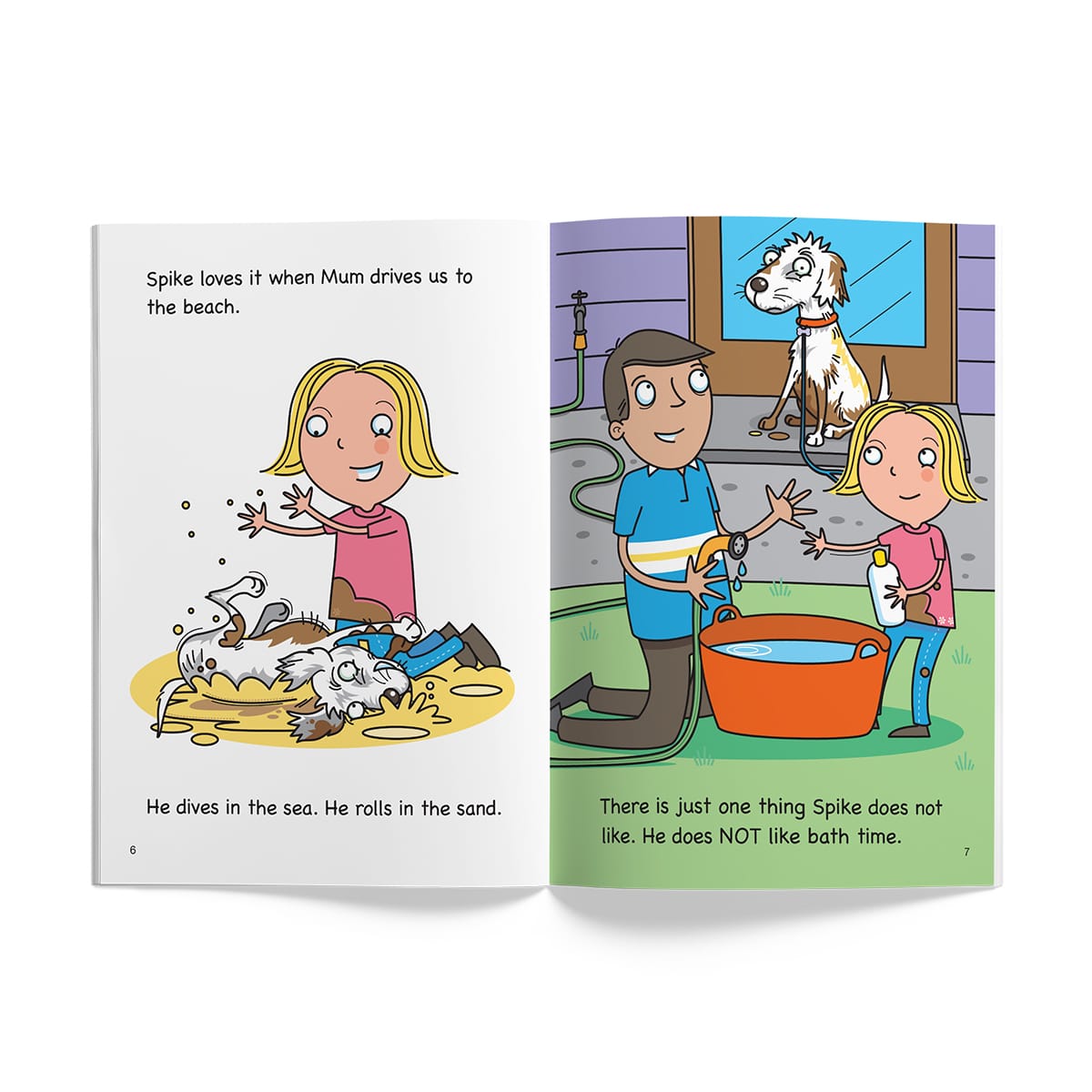 How do we get Spike to have a bath? This Level 13 reader in the InitiaLit Readers sequence focuses on: split digraph i_e. (Author: Nicola Bell, Illustrator: Jimmy Peacock) The InitiaLit Readers Levels 10-16, Series 2, The Wattle Series are carefully scaffolded for children in their second year of school to practise their developing reading skills, following the InitiaLit–1 phonic sequence, and should be purchased by schools using the InitiaLit–1 program and MiniLit Sage. Full sets of Readers (Levels 10-16), bundle sets for each level (10-16) or individual titles can be also be purchased by parents wishing to support their child’s reading, or by any school wishing to provide decodable readers to support an evidence-based synthetic phonics approach to teaching reading. Each title includes instructions and pre- and post-reading activities to help teachers and parents use the books effectively.