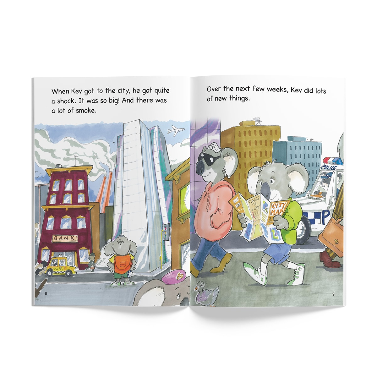 Read about Kev the Koala’s adventures in the city. This Level 13 reader in the InitiaLit Readers sequence focuses on: split digraph o_e. (Author: Alison Folland, Illustrator: Andrew Grant)