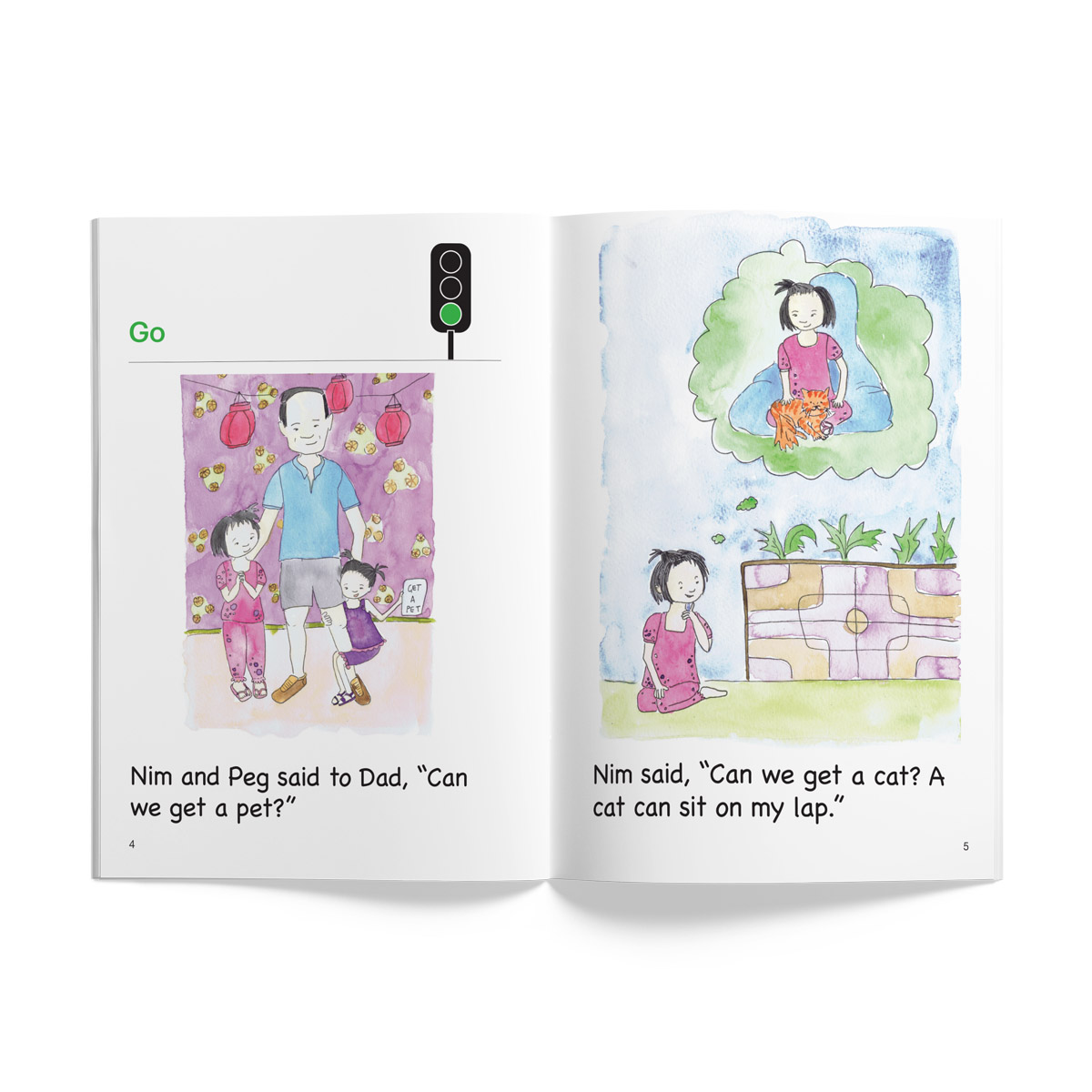 Nim wants a cat and Peg wants a dog. What will they get? This reader focuses on the Level 3 sounds in the InitiaLit Readers sequence: e, n, g, l. (Author: Barbara Healy, Illustrator: Rozzy Hibbard)