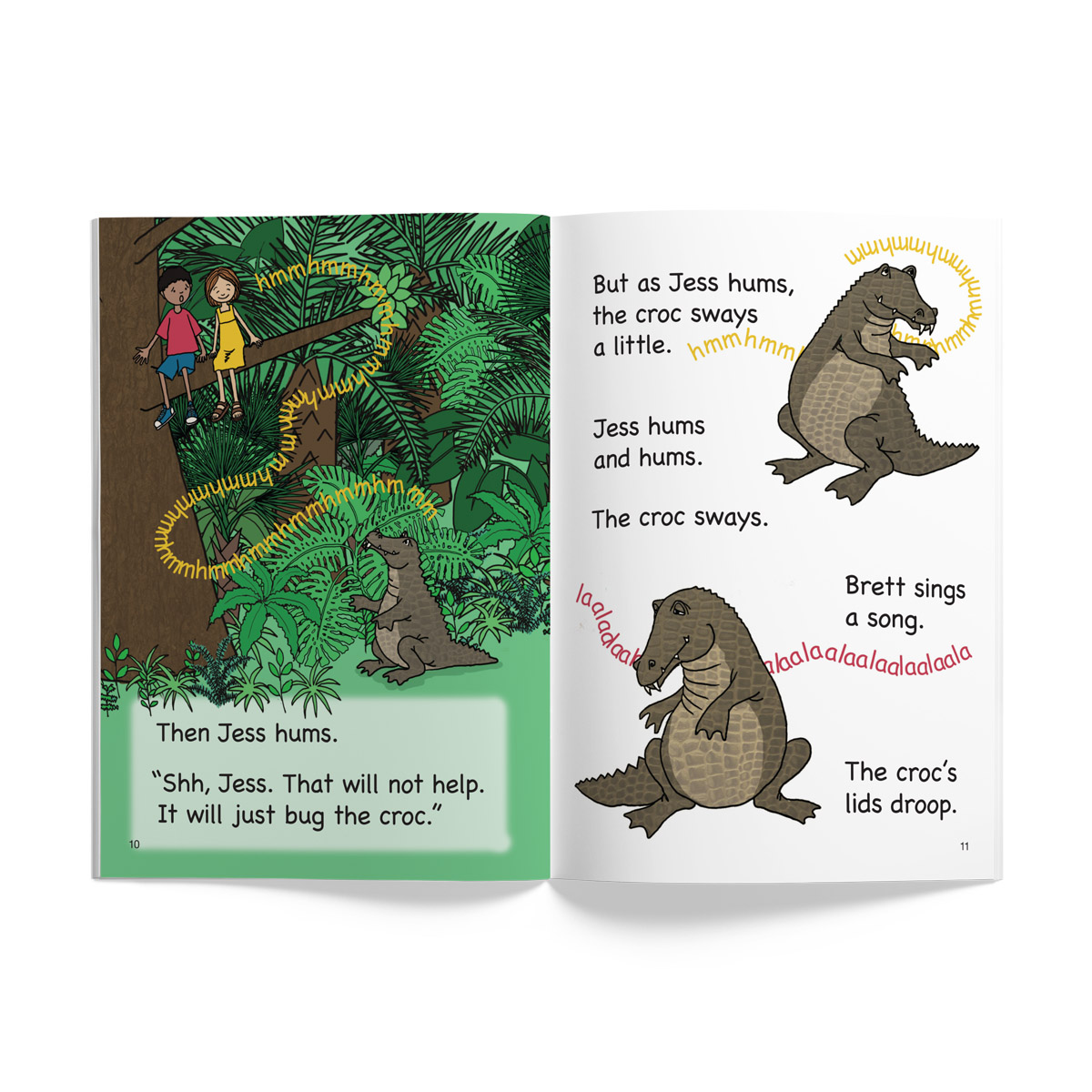 Jess and Brett come face to face with a crocodile. How will they escape? This Level 9 reader in the InitiaLit Readers sequence focuses on consonant blends (CVCC and CCVC words). (Author: Colette Read, Illustrator: Janet Tiitinen)