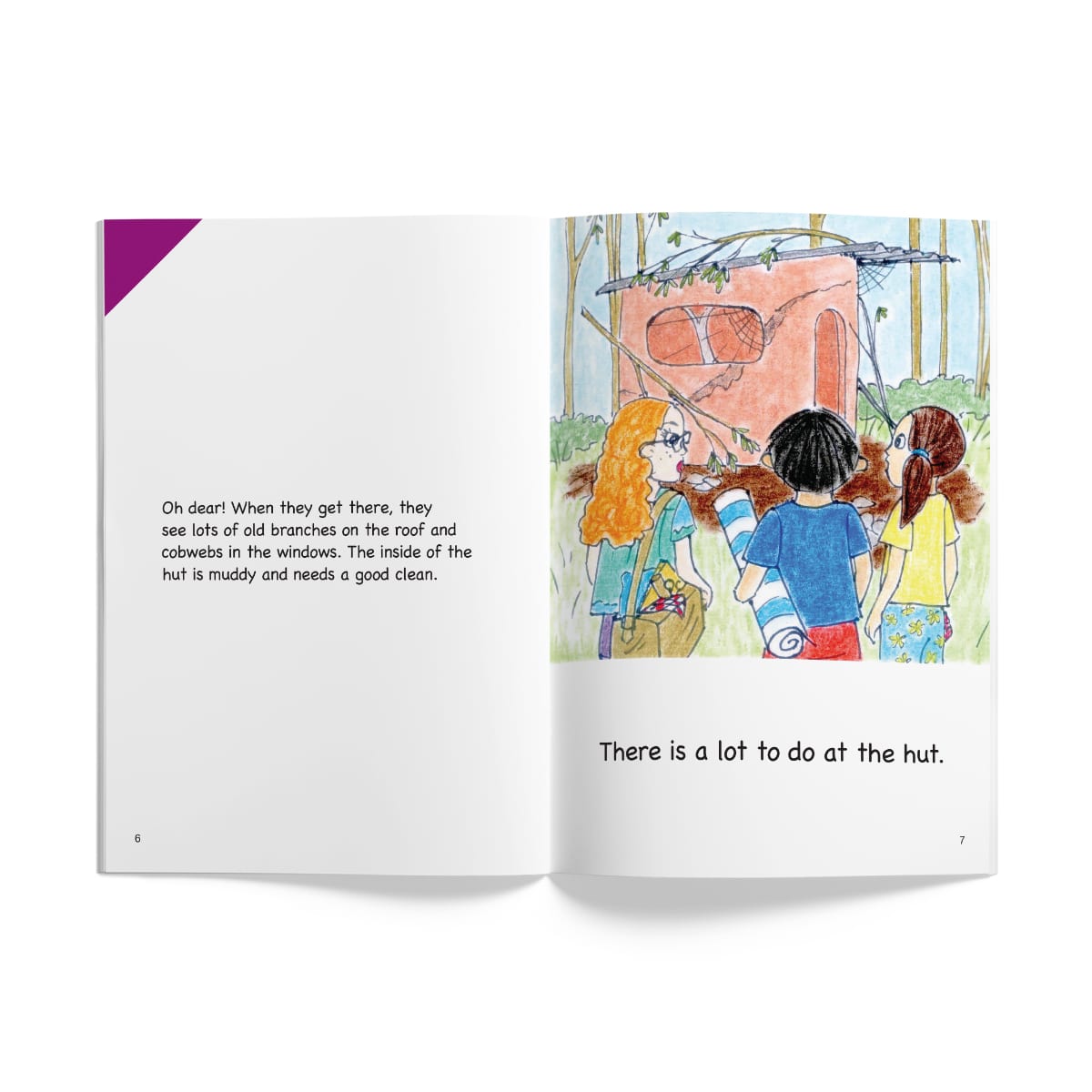 ‘The Hut’ is a Shared Reader, allowing an adult to provide extra support by reading together with a child (alternating pages).
