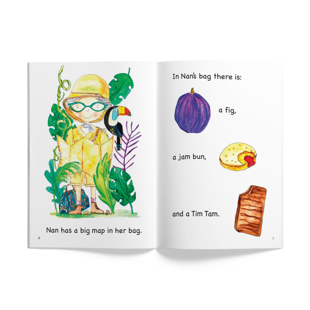 Can you guess what Nan keeps in her big bag? This reader focuses on the Level 4 sounds in the InitiaLit Readers sequence: k, u, b, j. (Author: Colette Read, Illustrator: Rozzy Hibbard)