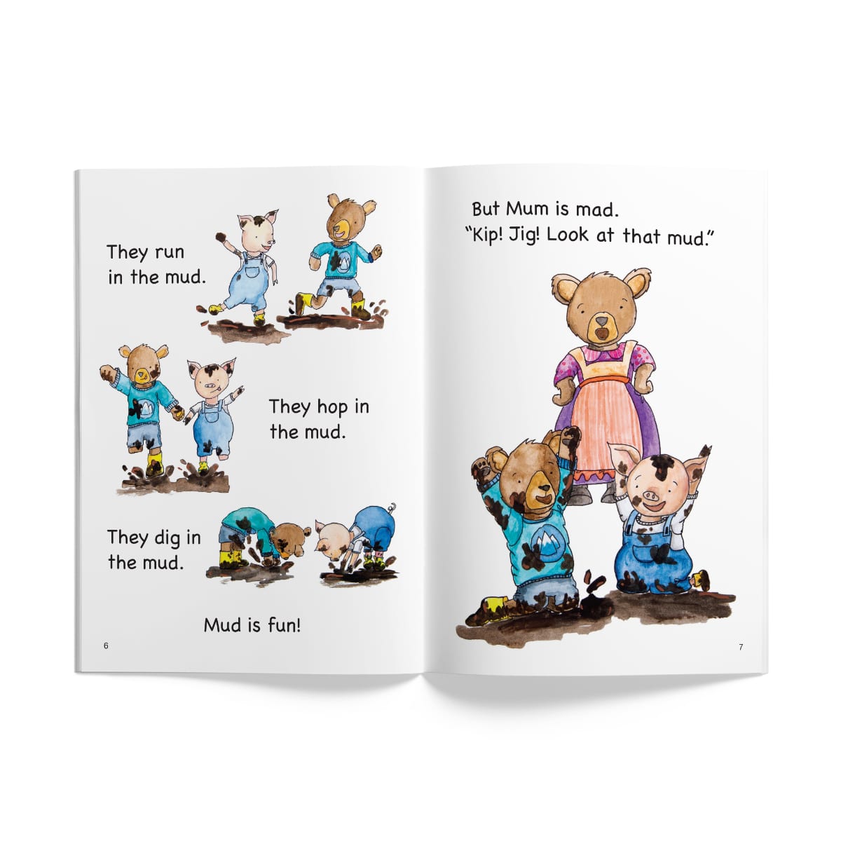 Two little animal friends have fun in the mud. This reader focuses on the Level 4 sounds in the InitiaLit Readers sequence: k, u, b, j. (Author: Renelle Pittman, Illustrator: Rozzy Hibbard)