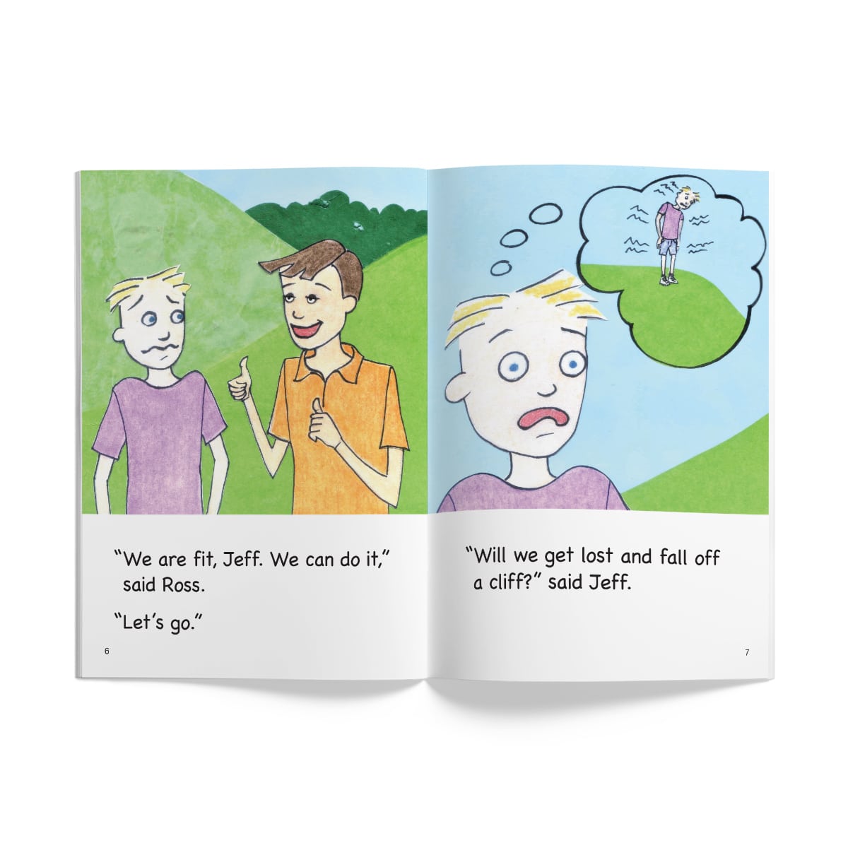 Ross wants to run to the top of the ill, but his friend Jeff is scared. This reader focuses on the Level 5 sounds in the InitiaLit Readers sequence: w, ck, ll, ff, ss. (Author: Barbara Healy, Illustrator: Wendy Schuster)