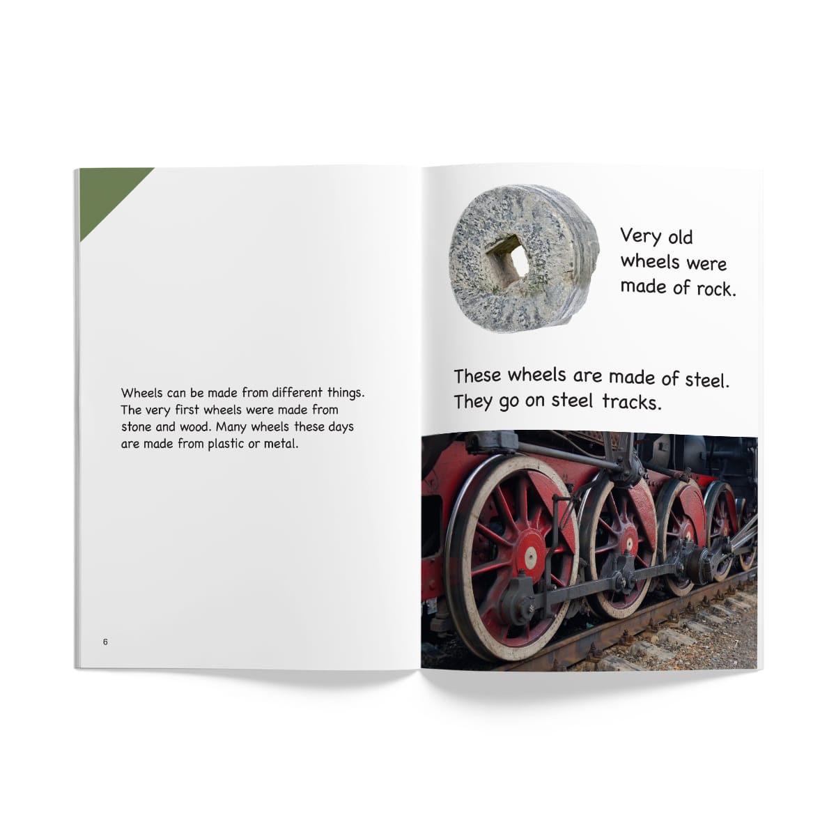 Wheels are everywhere! Find out more about this important invention. This reader focuses on the Level 8 sounds in the InitiaLit Readers sequence: wh, th, oo, ng, ay. (Author: Colette Read)