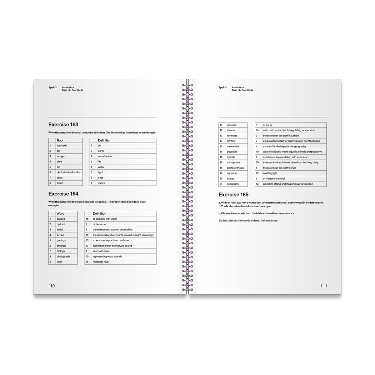 A reference book for the teacher, providing all answers to the exercises in the Spell-It Activity Book.