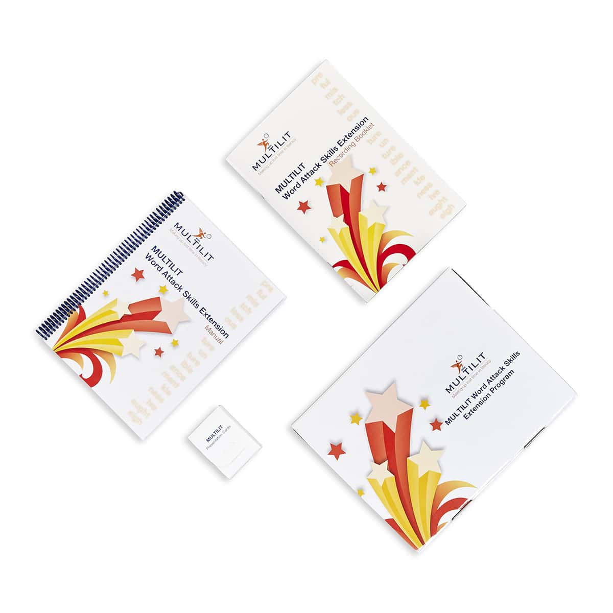 The Kit includes a Word Attack Skills – Extension Manual, a Word Attack Skills – Extension Recording Booklet (additional booklets can be purchased), Presentation Cards and a Reinforced Reading Booklet and USB.