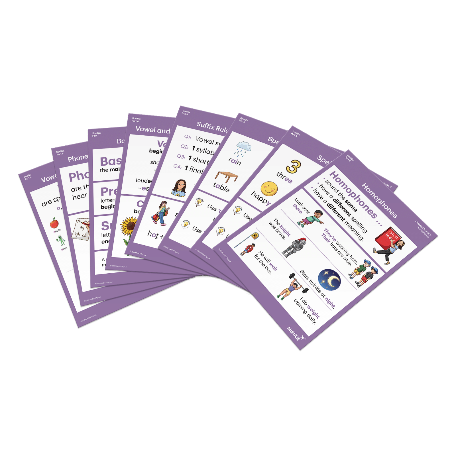 This pack includes 28 A4-size SpellEx Part A Concept Posters, as well as the Stella's Super Speller Checks Poster (A3). Each concept is simply and clearly defined, with illustrated examples.